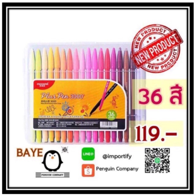 - เช็คราคา >> 119 บาท NEWSINLลด 100 บาท Monami Pluspen 36 สี + กล่องพลาสติกแข็ง พกพาง่าย มีทั้ง 12,24,36สี พร้อ
