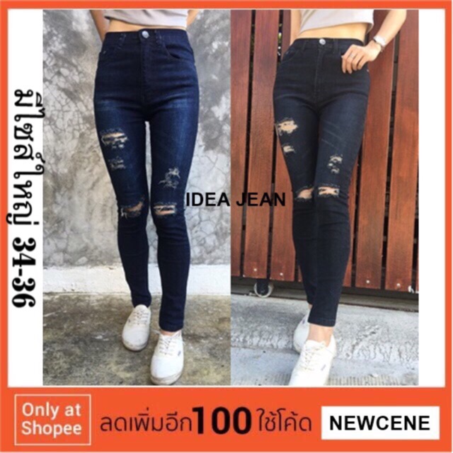 - - เพิ่มไซส์ใหญ่ 34-36 Punny ยีนส์ เอวสูงผ้ายืด สีฟรมฟอก-ดำฟอก แต่งขาดไม่เยอะ ผ้าดีมาก อยากใส่สบายเผ ราคาถูก