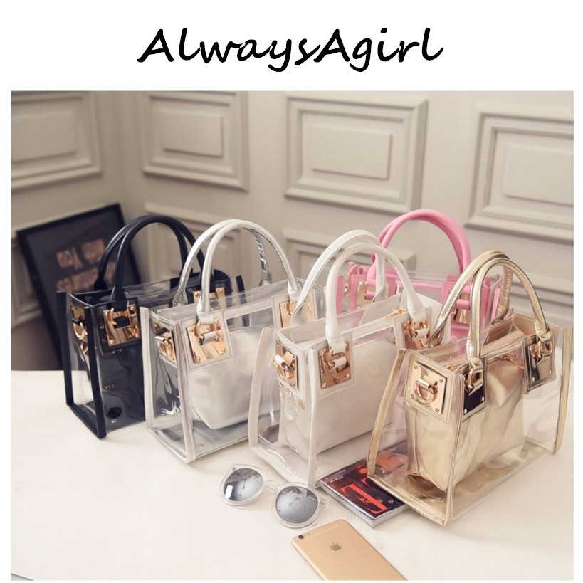 ขาย แนะนำ Jelly Bag กระเป๋าพลาสติกใสสีหวาน ชุด2ชิ้น งานเนี๊ยบ มีหลายสี ดูดีหรู กระเป๋าสะพายแฟชั่นเกาหล ราคาถูกส่งฟรีทั่วประเทศ
