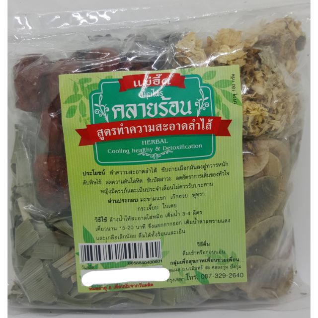 **เกิน 5 ชิ้นแยกออเดอร์นะคะ น้ำหนักเกินขอยกเลิกออเดอร์คะ คลายร้อนแม่อี๊ด (สูตรทำความสะอาดลำไส้) ประโยชน์... ช่วยทำความสะอาดลำไส้ ขับเมือกมัน ดับพิษไข้ ลดความดัน ขับปัสสาวะ ส่วนประกอบ... มะขามแขก เก๊กฮวย พุทรา กระเจี๊ยบ ใบเตย **หญิงมีครรภ์และเป็นประจำเดือนไม่ควรรับประทานไม่ควรรับประทาน น้ำหนัก100กรัม