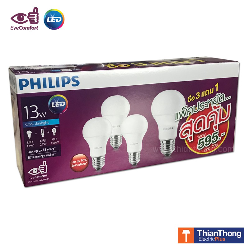 ค้นหาร้านขาย แพ็คสุดคุ้ม ซื้อ 3 แถม 1 หลอดไฟฟิลิปส์ LED Bulb 13W แสงขาว มีสินค้าพร้อมจัดส่ง สั่งซื้อง่ายๆ ชำระเงินปลายทางได้