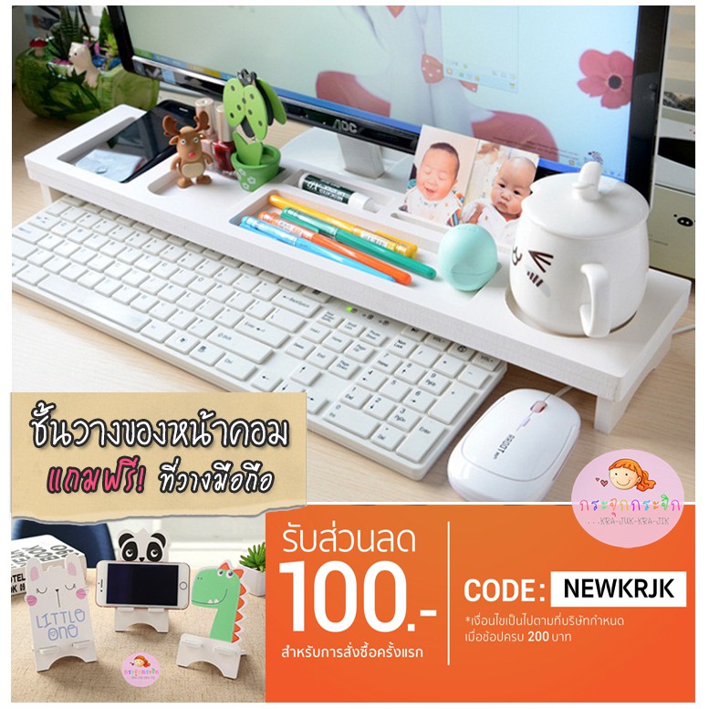 Product Details ส่งฟรีเคอรี่ ชั้นวางหน้าคอม แถมที่วางมือถือลายน่ารัก