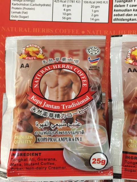 ชื่อสินค้า : Kopi Jantan Tradisional (Natural Herbs Coffee) Exp.23/06/2019 วิธีบริโภค : 1 ซองสามารถชงได้ 3-4 ถ้วยชา (ปริมาณน้ำ100 มิลลิลิตร) ให้ชงดื่มด้วยน้ำร้อนหรือน้ำอุ่น สรรพคุณโดยรวม : เพิ่มสมรรถภาพร่างกายของท่านชายให้ดียิ่งขึ้น ยกแผงราคา 390 บาท มี20ซอง สอบถาม ขอคำแนะนำได้นะครับ ไม่ว่าคุณนกเขาไม่ขัน หรือล่มปากอ่าว วันนี้มีทางออกเเล้ว กับกาแฟสมุนไพร ที่จะช่วยให้คุณสนุกกับคู่รักตลอดภารกิจ ประหยัด คุ้มกว่า viarga เพิ่มความแข็งแรงของหลอดเลือด เพิ่มการไหลเวียนเลือด ทั้งหลอดเลือดดำและแดง เพิ่มเลือดไปยังอวัยวะเพศดีขึ้น ช่วยสร้างกล้ามเนื้อและเส้นเอ็น ทำให้องคชาติแข็งแรงสมบูรณ์ขึ้น รับประกันของแท้ สินค้านำเข้าจากมาเลเซีย ShopeeBuddy
