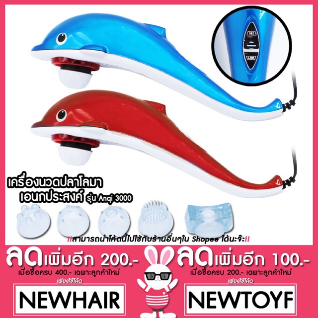Product Details ส่งฟรี Kerry เครื่องนวดปลาโลมาเอนกประสงค์ รุ่น Anqi 3000 แดงน้ำเงิน คละสี