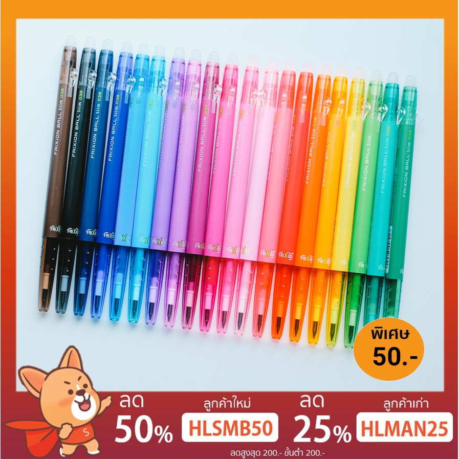 - - โปรโมชั่น *แจกโค้ดส่วนลด* Pilot Frixion Slim ปากกาลบได้ 0.38mm แบบกด (20 สี)